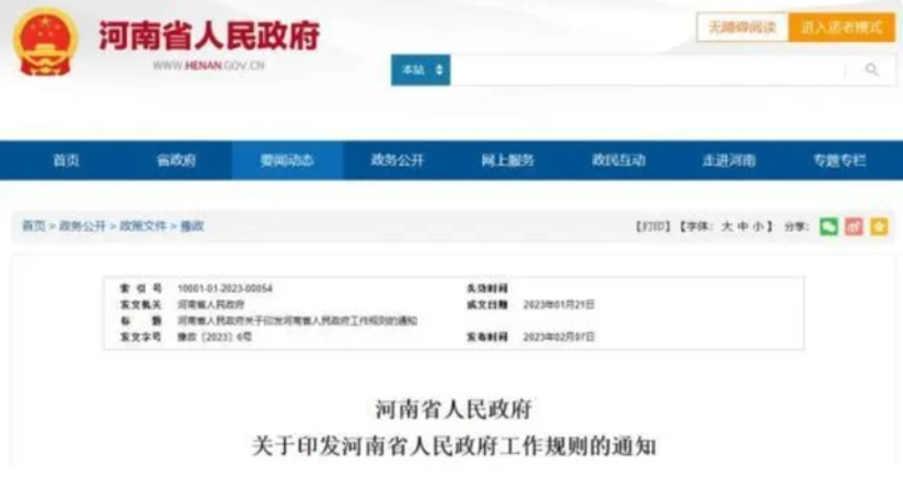前不久,河南省政府印发《河南省人民政府工作规则》,从履行政府职能、推进政务公开、健全监督制度、工作纪律、廉政和作风建设等十一个方面为省长、副省长、秘书长及省政府各部门主要负责人划定工作规则,明确了多达68条“规矩”。