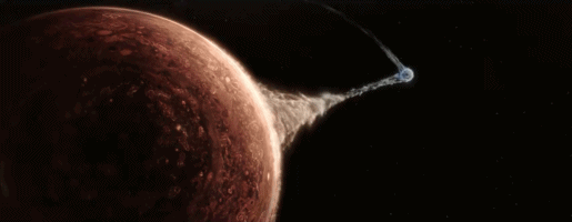 第一部中,在地球还没有飞出太阳系的时候,飞近了木星的时候,被木星引力吸引,地球逐渐接近木星并最后要撞击木星的危险时刻。