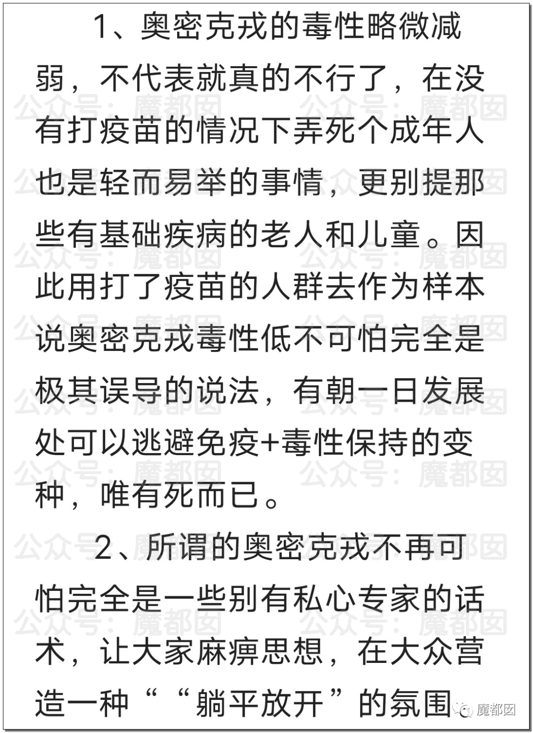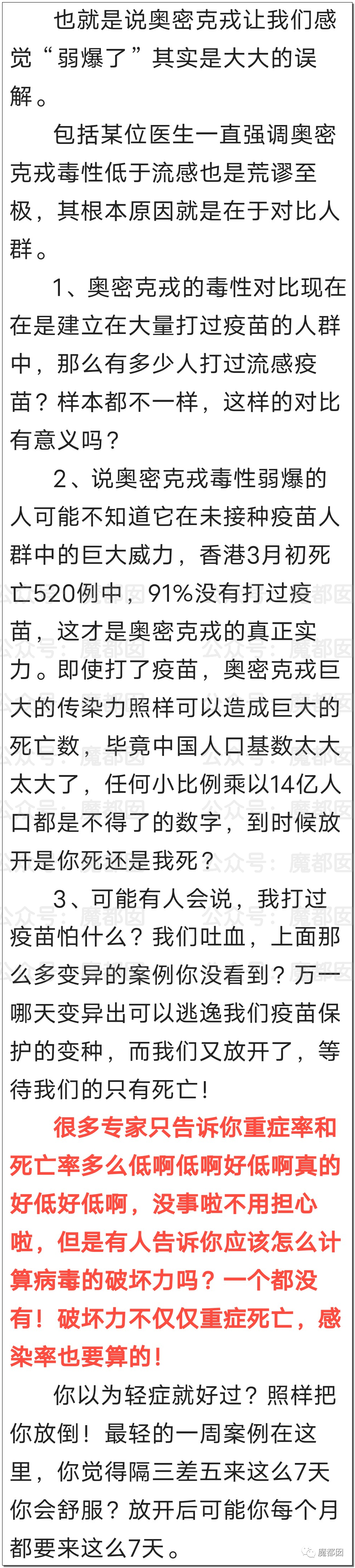 当时N多医生专家都在故意弱化奥密克戎,不知道真的是专业知识不足还是人心坏,我们在4月份的时候就立场鲜明的指出奥密克戎的威力绝对不容小觑!现在大家看看身边都是发烧咳嗽乃至于肺炎的,我们有没有预判错?下面是我们当时4月4日的文章原文截图:
