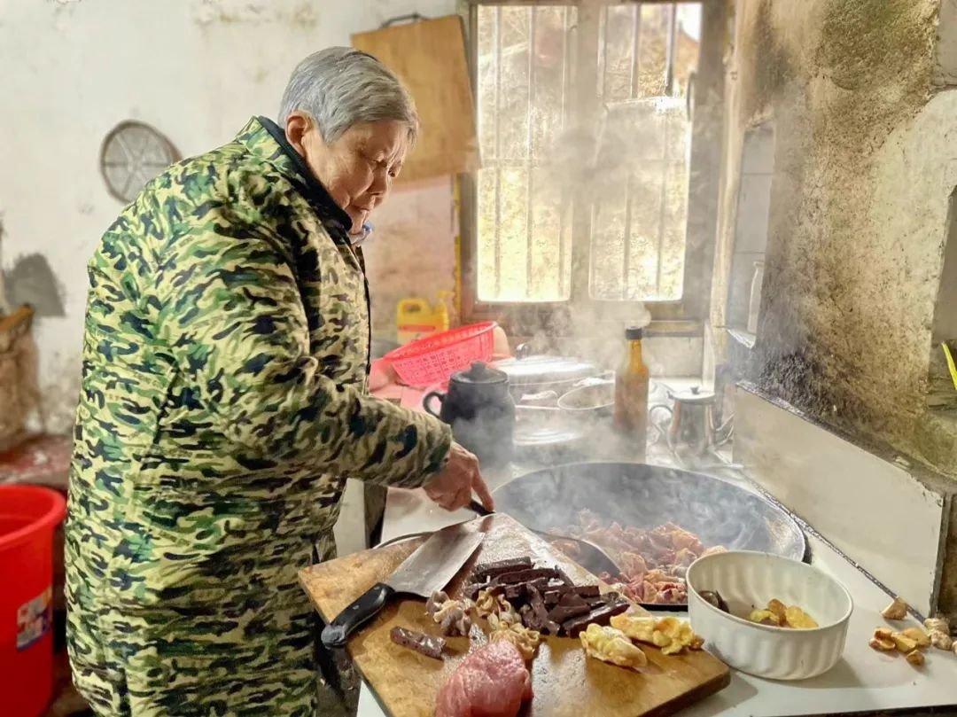 孙仙菊的生活重点是养好她的十几只鸡。她把屋旁的依山空地改造成鸡棚,像种花一样细心关注她的鸡。家人们最喜欢吃她做的鸡,肉炒至金黄,再装进土罐放到灶膛里慢慢地煨,每个人都忍不住喝上几碗汤。外婆原本计划好了,三个女儿,过年每家分两只,先炖一只吃,再带一只走,她最大的“功劳”就完成了。