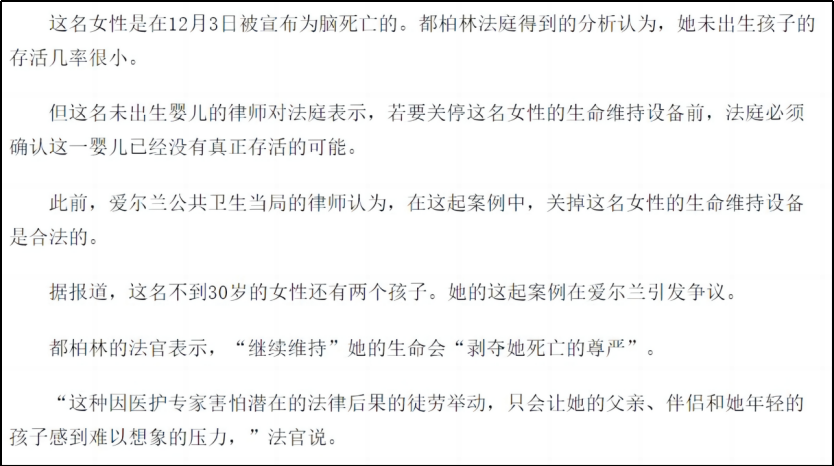 专家B:脑死亡怀孕女子生命维持设备可关停,否则就是在剥夺她死亡的尊严。