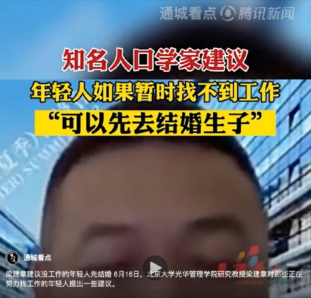 新周刊:专家建议,年轻人如果找不到工作,可以先结婚再生孩子。这建议合适吗?