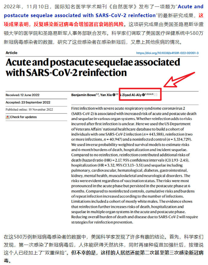 Ziyad Al-Aly上个月在nature medicine发表了相关文章:感染新冠病毒一周年后,71%的患者都仍留有后遗症,仅有29%的患者完全康复。新冠状病毒长期后遗症的风险因素(被称为 "长COVID"), 这些症状在康复后可能持续很长时间,从味觉丧失和呼吸短促到注意力不集中和记忆力减退。该研究与世界各地的一些研究人员合作,分析了209名患者的数据,确定了导致长期后遗症的四个关键因素:2型糖尿病、新型冠状病毒血症、Epstein-Barr(EB)血症和某些自身抗体的存在。