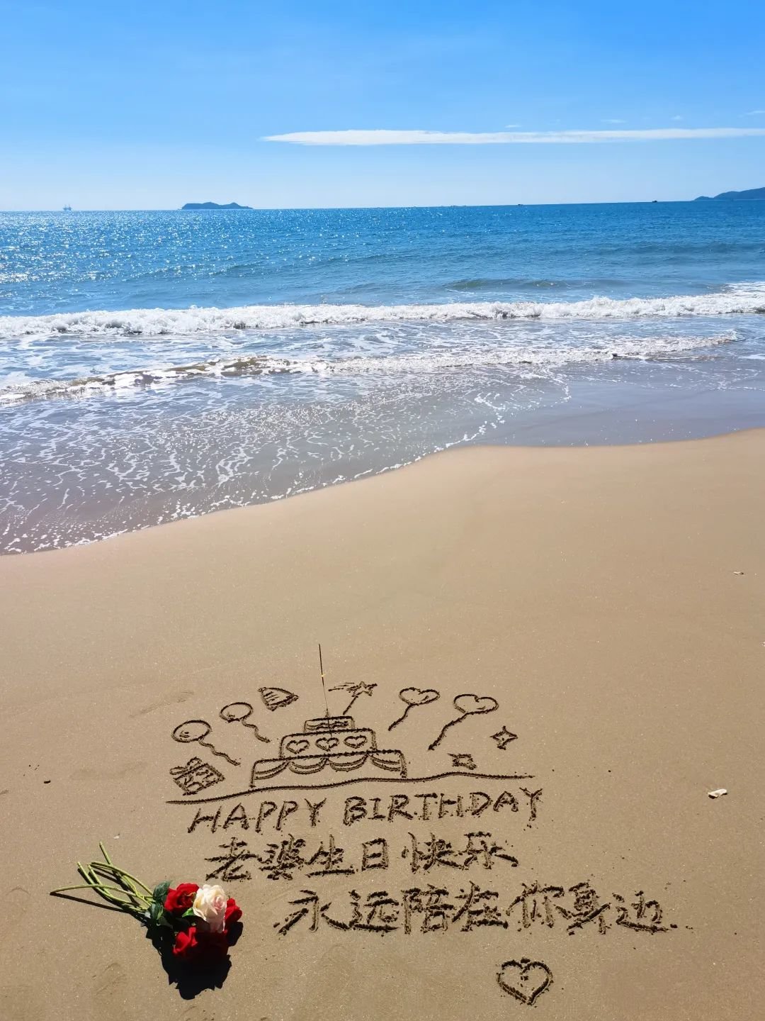 手写既是一种仪式感,也是一种陪伴。把名字、心愿、祝福、表白、寄语写在海边,算是一份独特又浪漫的礼物。