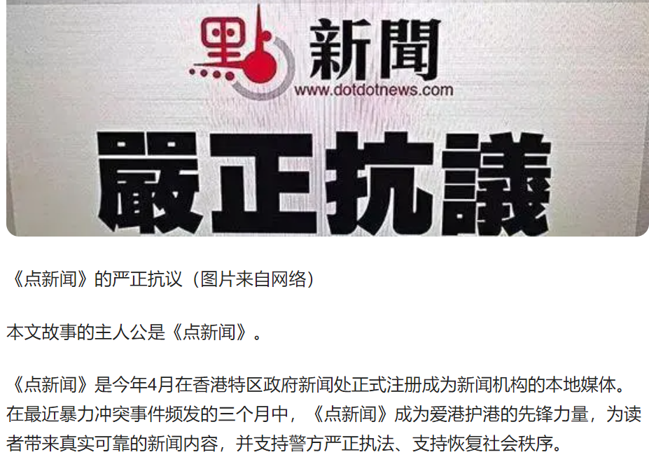 注:【点新闻】是2019年4月在香港特区政府新闻处正式注册成为新闻机构的本地媒体。