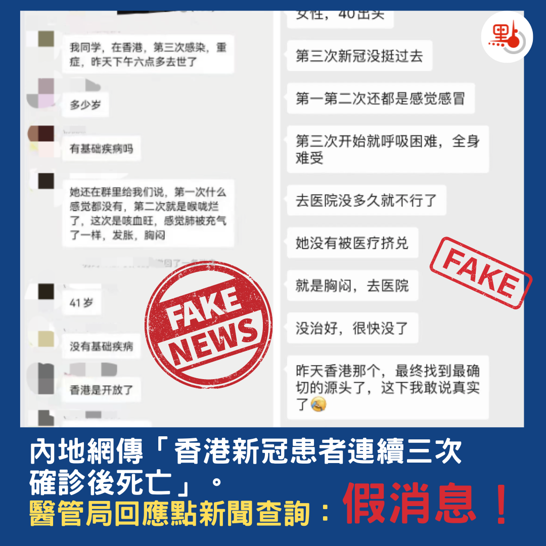 网传香港41岁女子第三次感染新冠后死亡?港医管局:核查无此个案