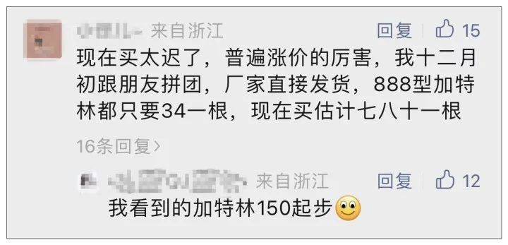 在底下的评论区,有网友认为,现在买烟花已经太迟了,价格普遍涨得厉害,“去年12月初跟朋友拼团,厂家直接发货,888型加特林只要34元一根,现在买要七八十元”。还有网友刚买了2000元烟花,“都没有什么大家伙,全是小的,感觉太贵了。”不过,也有网友表示:“不放烟花,不叫过年,小孩子最喜欢放烟花,烟花也就过年难得买一次,贵就贵了,开心最重要。