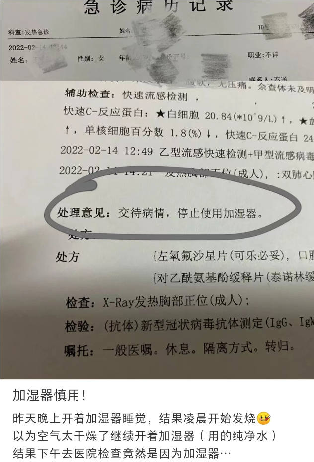 没错,这些病患都是因为在加湿器内,错误地使用了清洁剂和添加物,以及清洁不当等原因,从而引发出了“加湿器肺炎”等一系列肺感染。