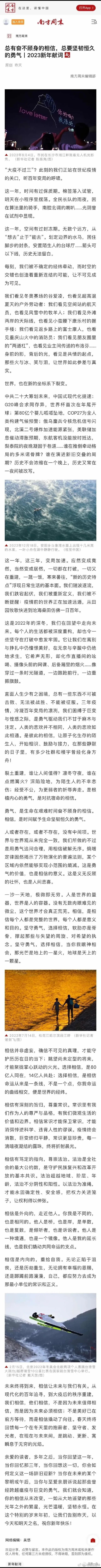 但我想说的是,看了南方周末2023新年献词,我的感触只能用一个词来形容:梦幻。因此我给这篇新年贺词的留评是:也许人们能、也只能在年关岁末时节,才能记得起南方周末的存在。