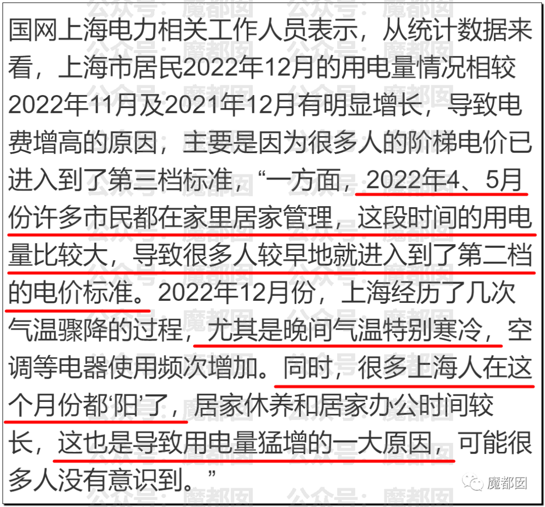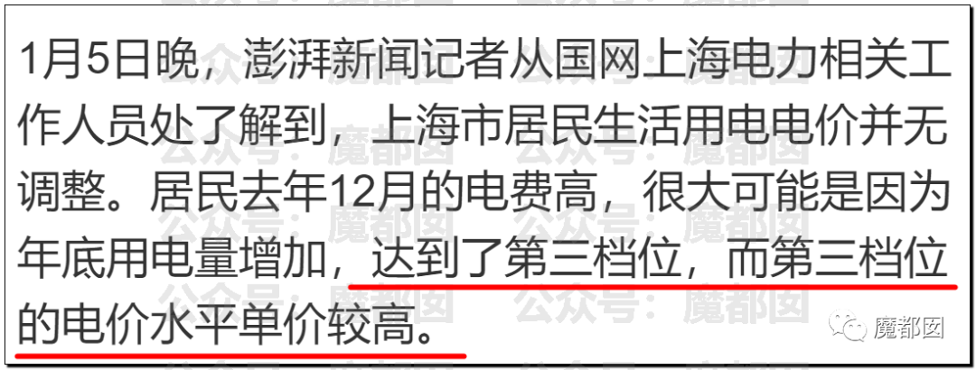 媒体的报道更加详细,多了一个解释,就是除了寒潮和居家之外,可能很多人到了年底这个电费用到了第三档,第三档的价格高。