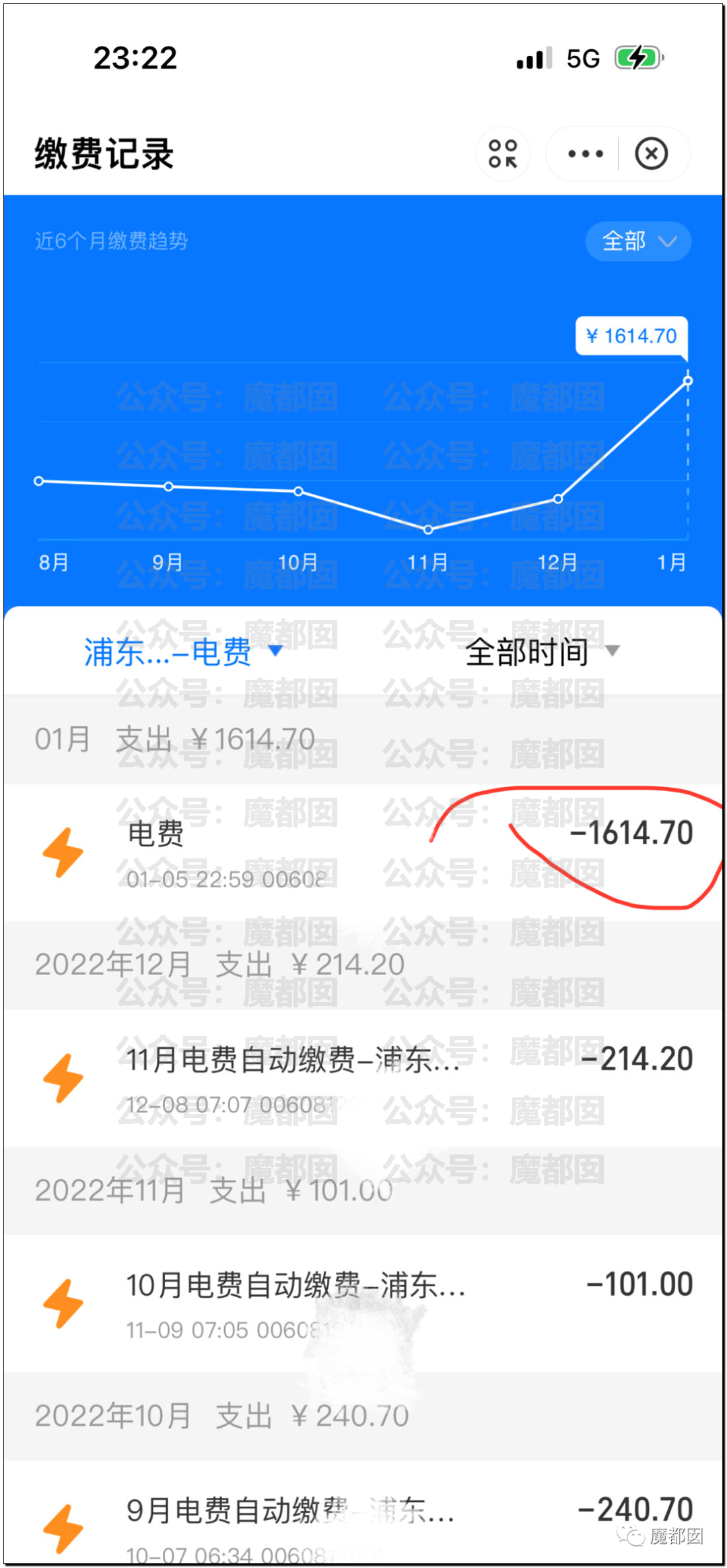 这位也是无法理解,平时100多200的电费,现在1200多: