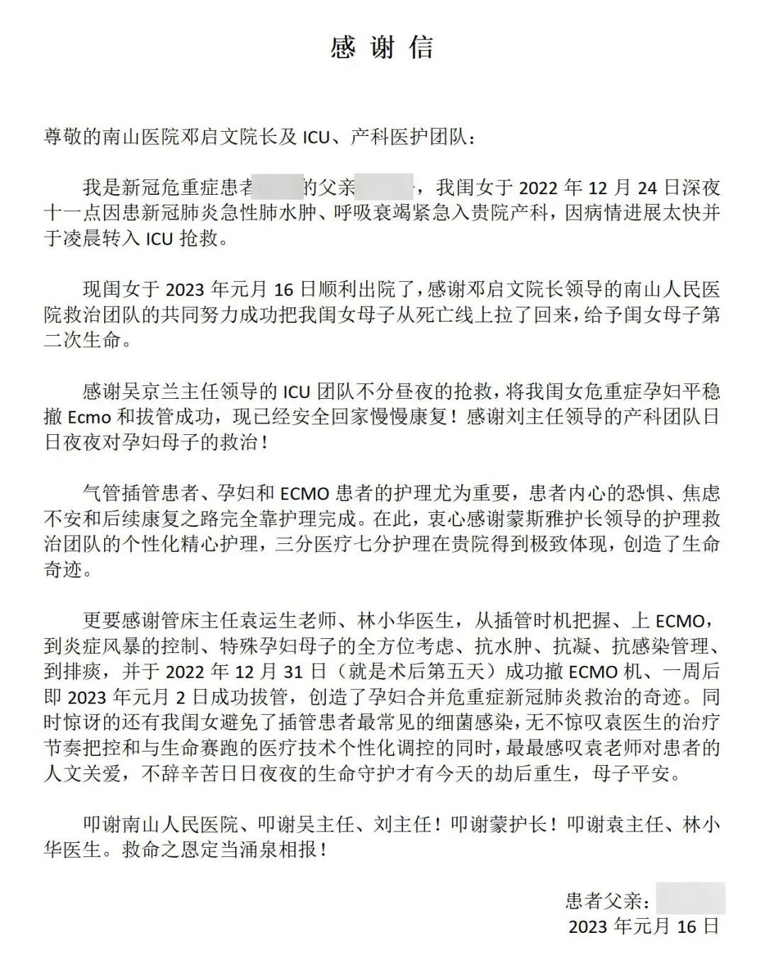12月31日下午,ECMO上机运行5天后,被顺利撤除,孕妇转危为安。