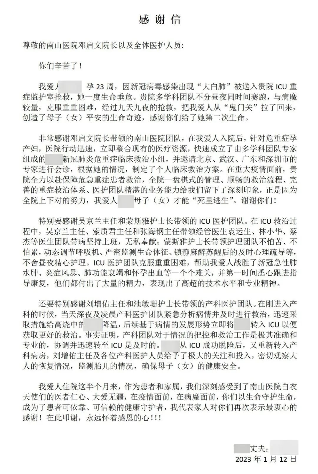 当晚10点,老公立即带她转院来到华中科技大学协和深圳医院,也就是南山人熟知的“南山医院”。