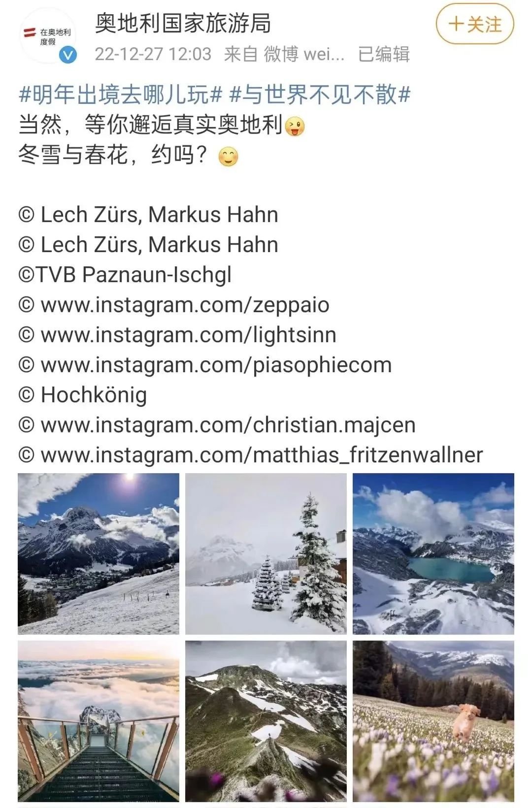 奥地利国家旅游局:“冬雪与春花,约吗?”