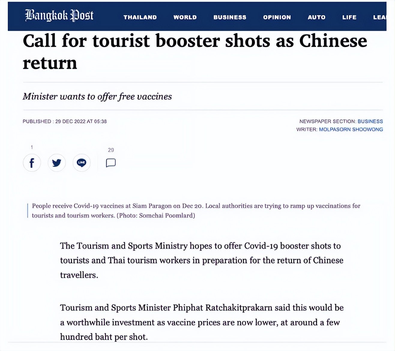 ● 《曼谷邮报》报道,泰国正考虑让入境旅客免费接种疫苗