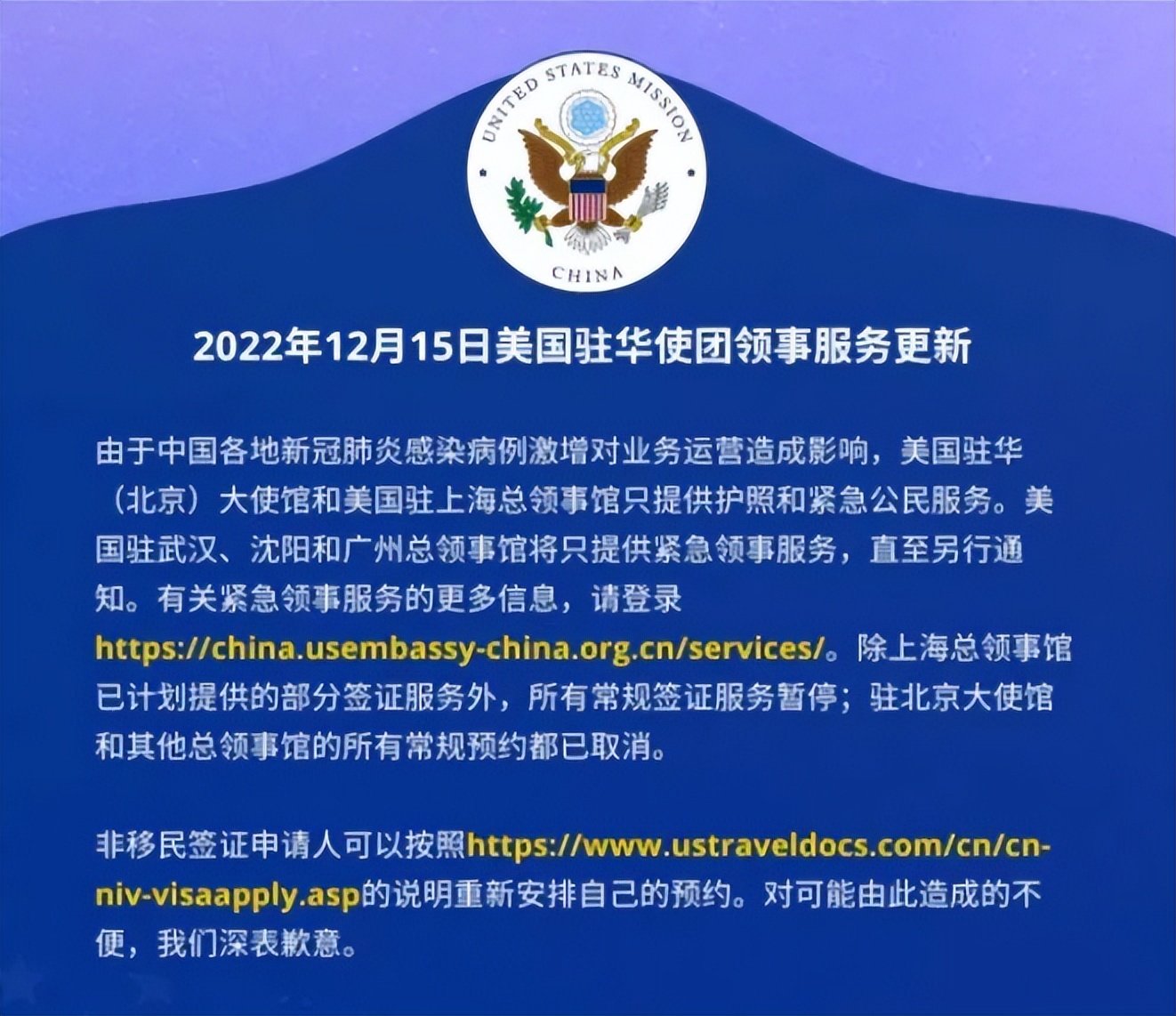 ● 中国出入境放开后,美国率先宣布对中国“暂停签证服务”