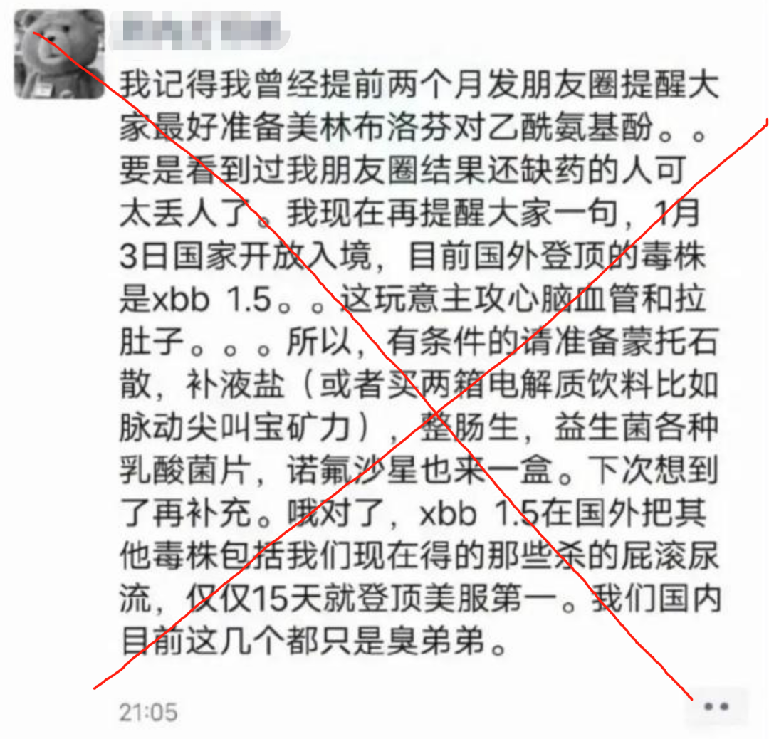 2022年12月31日,一张“关于XBB1.5毒株在美国登顶”的朋友圈截图,在各社交平台广泛蔓延。