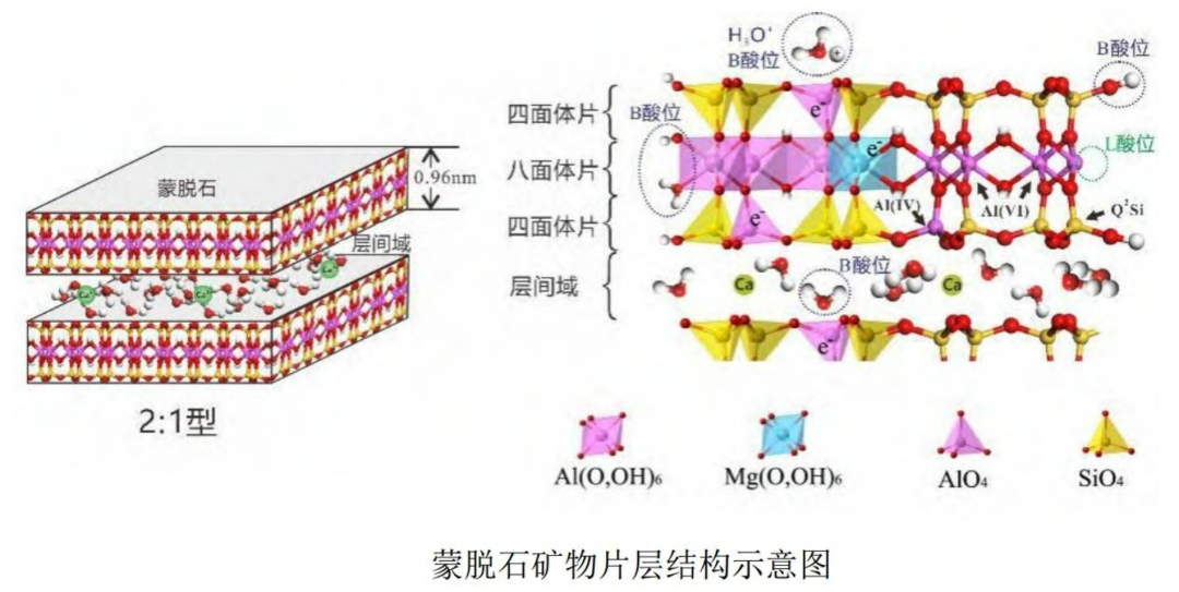 蒙脱石的分子式为(Na,Ca)0.33(Al,Mg)2[Si4O10](OH)2·nH2O,一个蒙脱石分子可以吸收n个水分子。