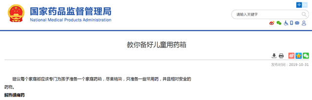 事实上,早在2019年10月,国家药品监督管理局就曾在官网发布信息,指导公众如何在家准备儿童药箱。