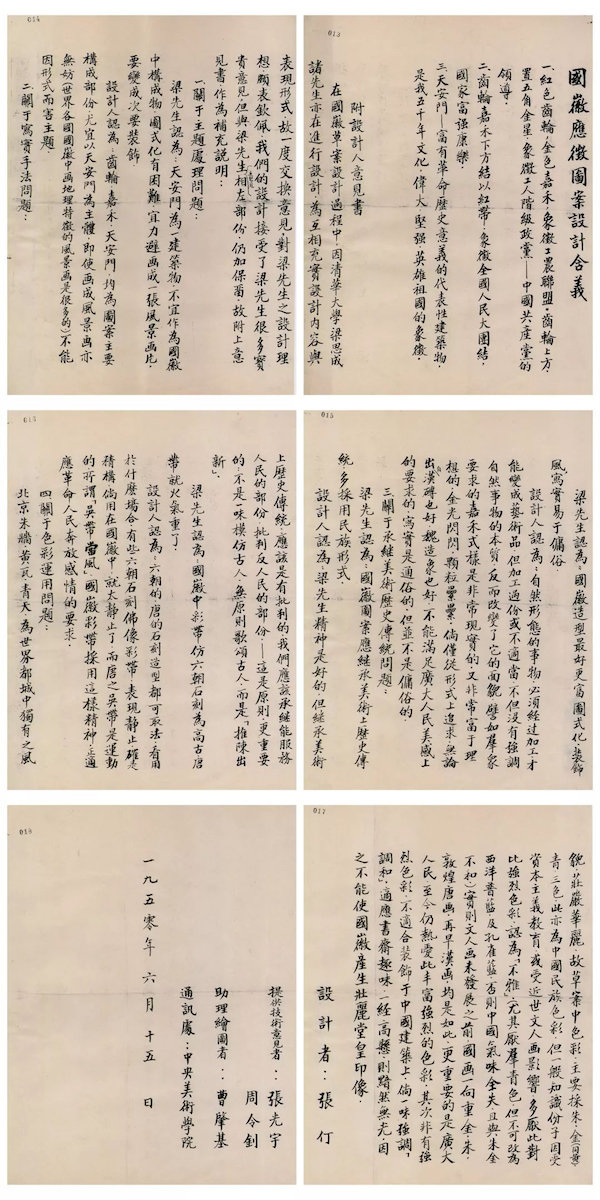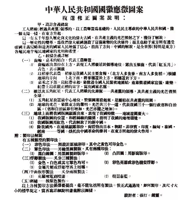 中央美术学院张仃等关于国徽应征图案说明书(复制件),1950年6月15日,原件中央档案馆藏