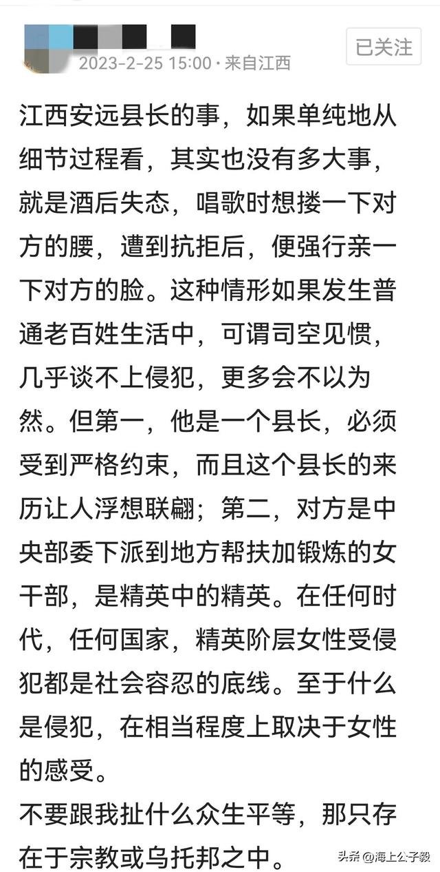 最近几天,江西安远县的李县长日子可不好过了,他没有想到自己一世英名,毁于酒后失态了。但是他终究是违法行为,只能怪自己没有洁身自好,做了不该做的事情。