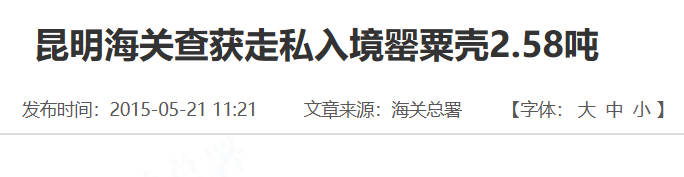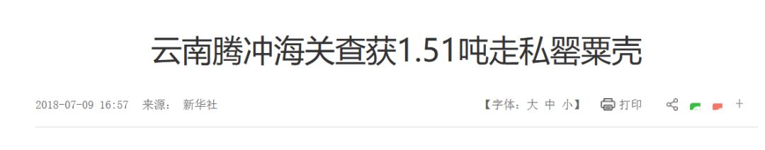不过随着监管力度的加大,从国外走私罂粟壳的难度也越来越大,进入国内的数量也越来越少。