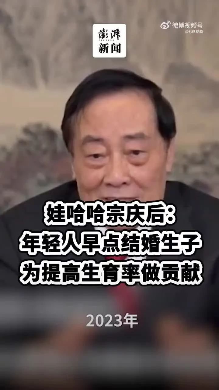 这件事引发广大网友热议,企业家群体也忍不住出来说几句。娃哈哈集团董事长宗庆后前两天就在一档节目中表示,希望年轻人早生孩子,为提高国家生育率做点贡献。言下之意溢于言表。