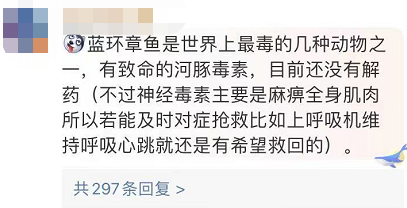 网友们的恐慌也不是毫无道理,蓝环章鱼可是世界上最危险的动物之一。