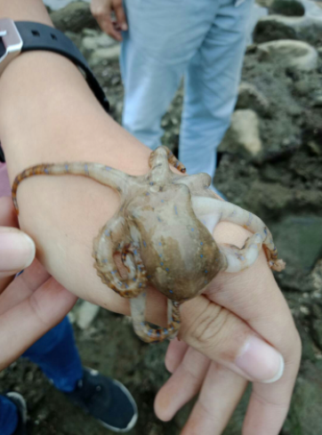 亚伦表示:“当我在家里把所有贝壳拿出来清洗时,我手上的海螺壳居然爬出了一只蓝环章鱼。”