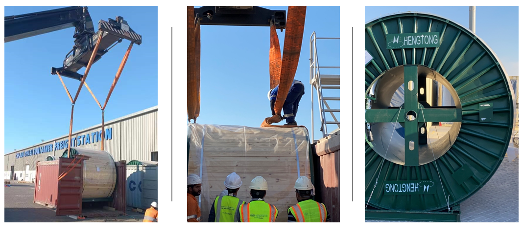近日,包括7个20尺开顶箱,单件接近9吨的大件电缆卷筒在内的阿布扎比场站光伏项目最新一批集装箱货物到港。开顶箱属特种箱,目的港免堆期8天,为节约转运掏箱还箱时间,经与客户沟通,决定在场站对7个开顶箱掏箱作业。