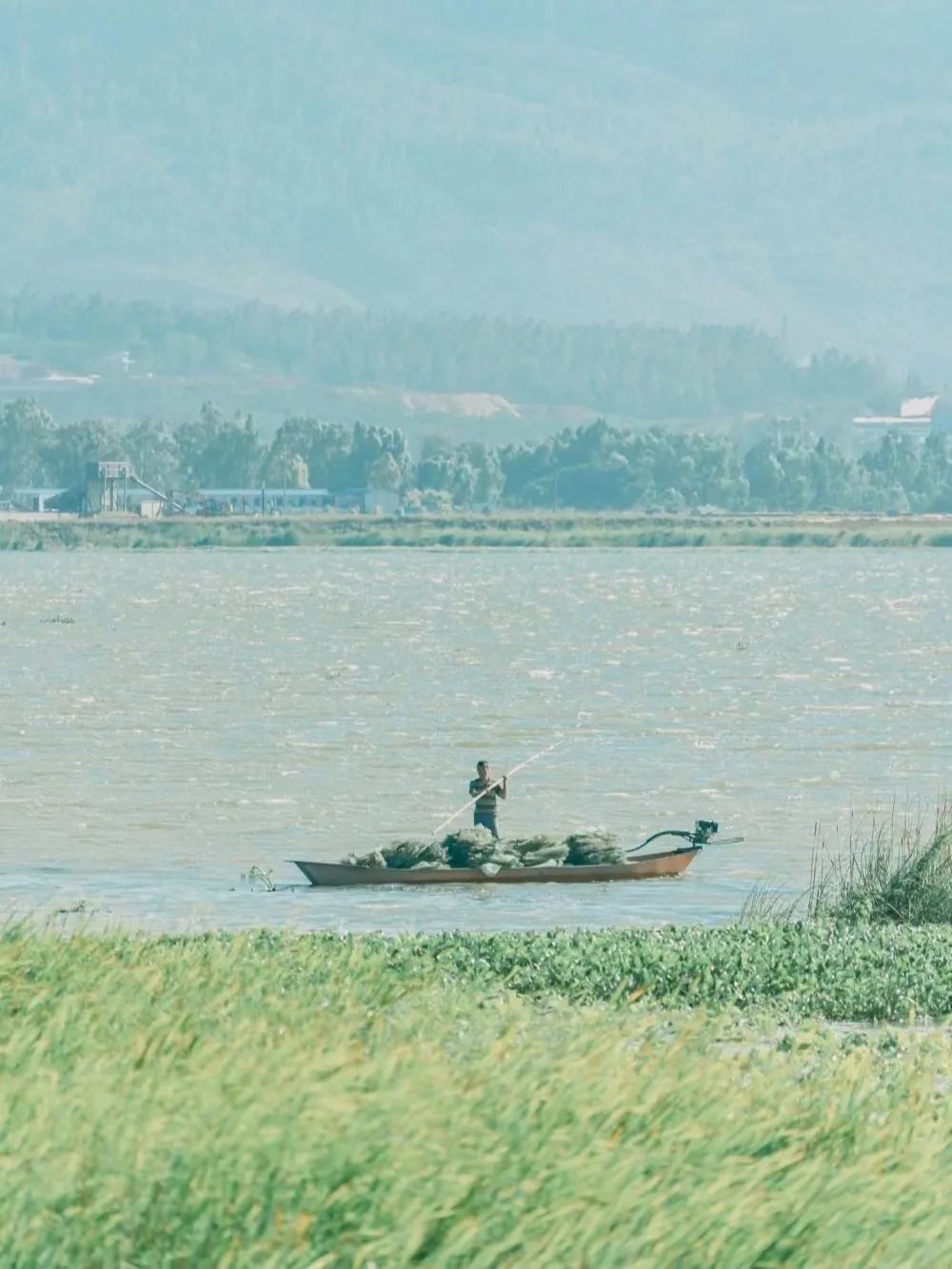 大屯海,叫海却是个美丽的湖泊,湖面平静,偶有几艘船在湖面上泛起涟漪。