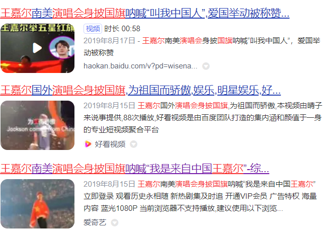 而且是专门跑到南美海外演唱会上身披国旗,特地给海外看。