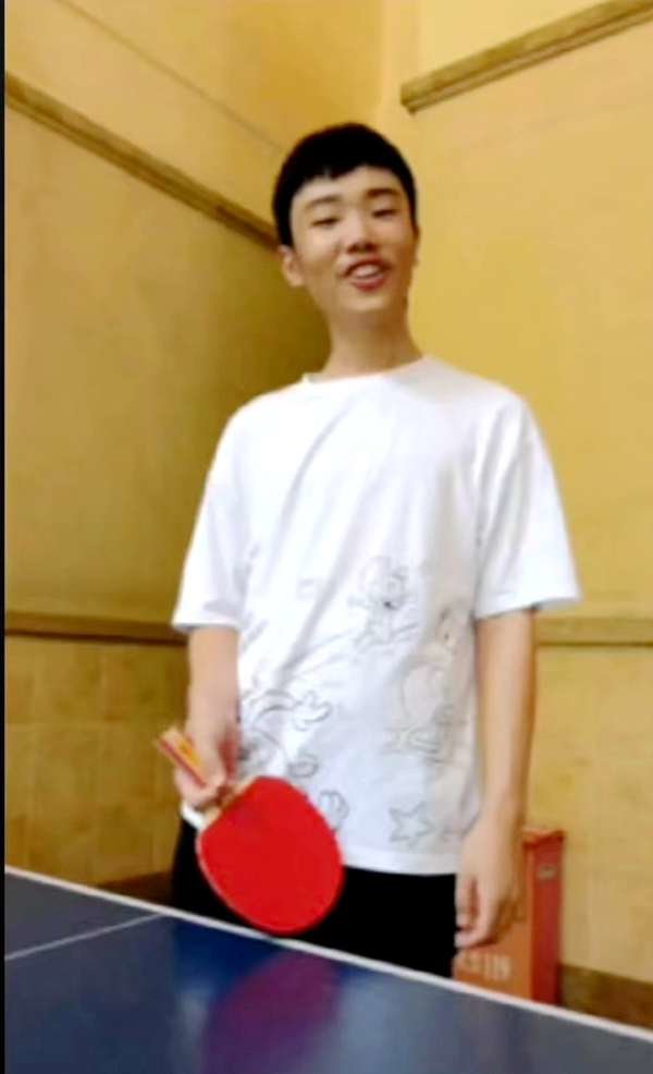 ▲去年暑假,妈妈李连英给刚打完乒乓球的儿子拍下这张照片。