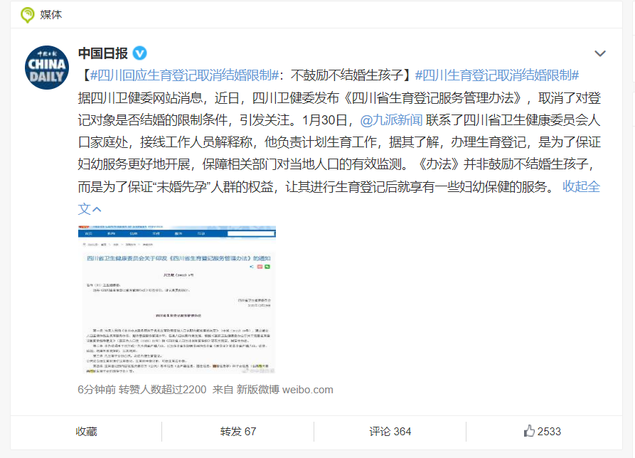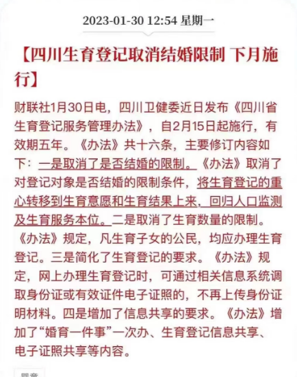昨天的新闻,说四川发布了和生育有关的新条例。
