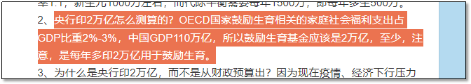 而中国GDP有110万亿,按比例来看,所以他认为中国每年至少需要投入2万亿在家庭福利开支上,才有可能提升生育率。