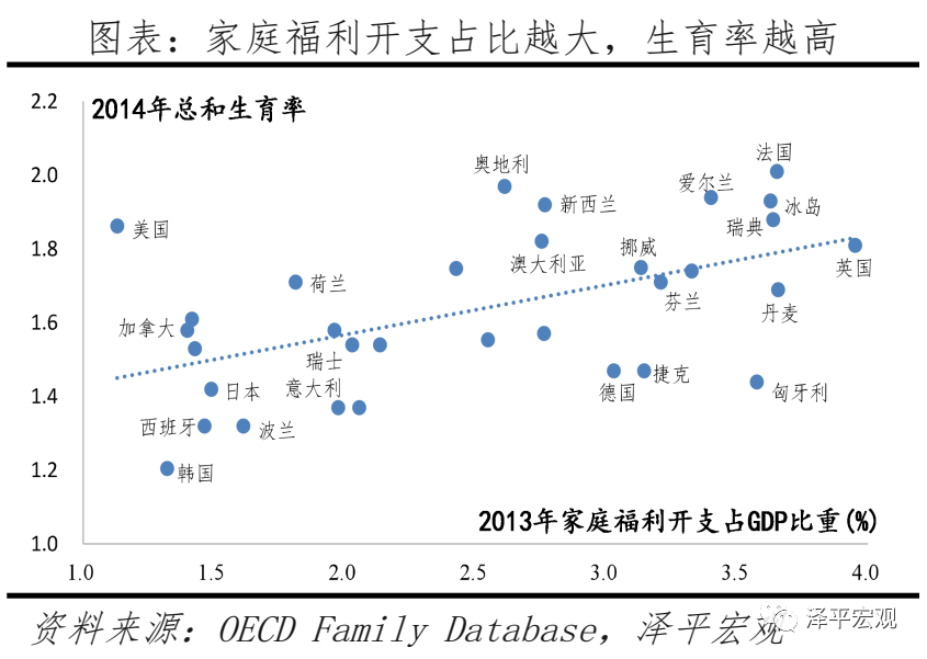 家庭福利开支占比越高的国家,生育水平越高。