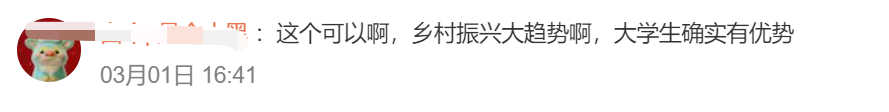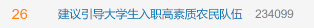 此外,他还建议国家有关部门从顶层设计构建大学生成为高素质农民的政策体系,拓宽农村创业就业渠道;出台大学生失业保障政策,解决入职农业就业的大学生在就近县域及城镇住房待遇以及下一代教育等社会保障机制,立法把培育高素质农民作为一项长期稳定的制度,并赋予高素质农民终身受教育的权利。