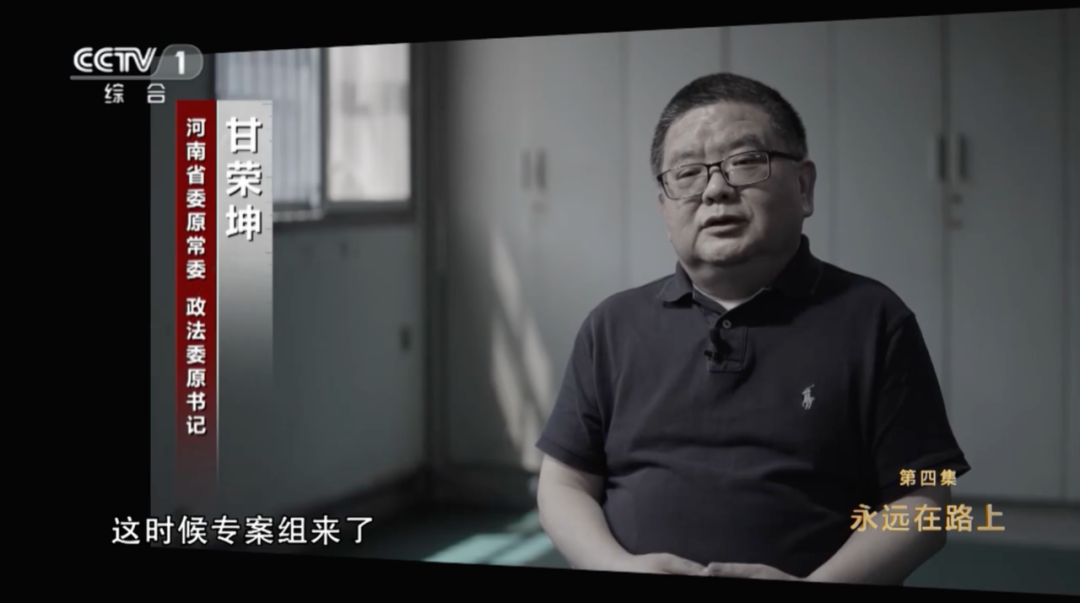 1月10日晚,电视专题片《永远吹冲锋号》第四集《永远在路上》播出,披露了河南省委原常委、政法委原书记甘荣坤违规插手干预案件,以案谋私的案情。