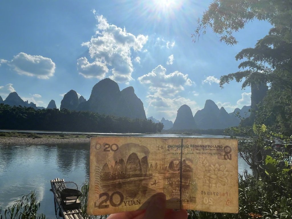 时隔多年,每一个来阳朔县兴坪镇的他乡客都向往能和20元人民币上的渔翁不期而遇。