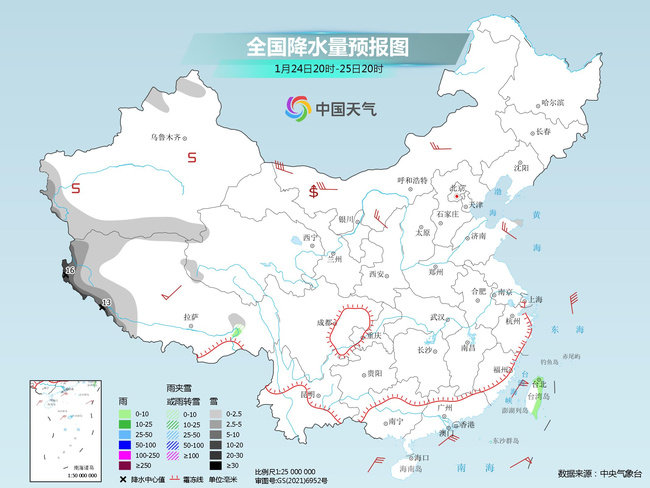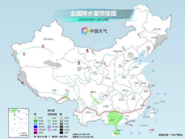 受寒潮影响,预计,1月24日08时至25日08时,黄淮南部、江汉东部、江淮、江南大部、华南、云南东部等地气温将下降6~8℃,其中,浙江东部和南部、福建大部、江西中南部、广东北部等地部分地区气温下降8℃以上,局地降温超10℃。过程最低气温出现在25日早上,最低气温0℃线将位于云南东部、贵州南部至华南北部一线。