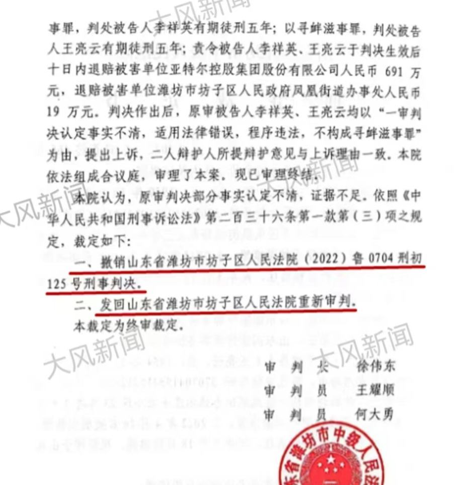 潍坊市中级法院终审裁定:撤销原审判决发回重新审判