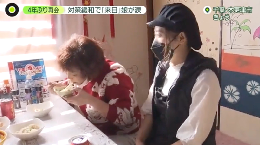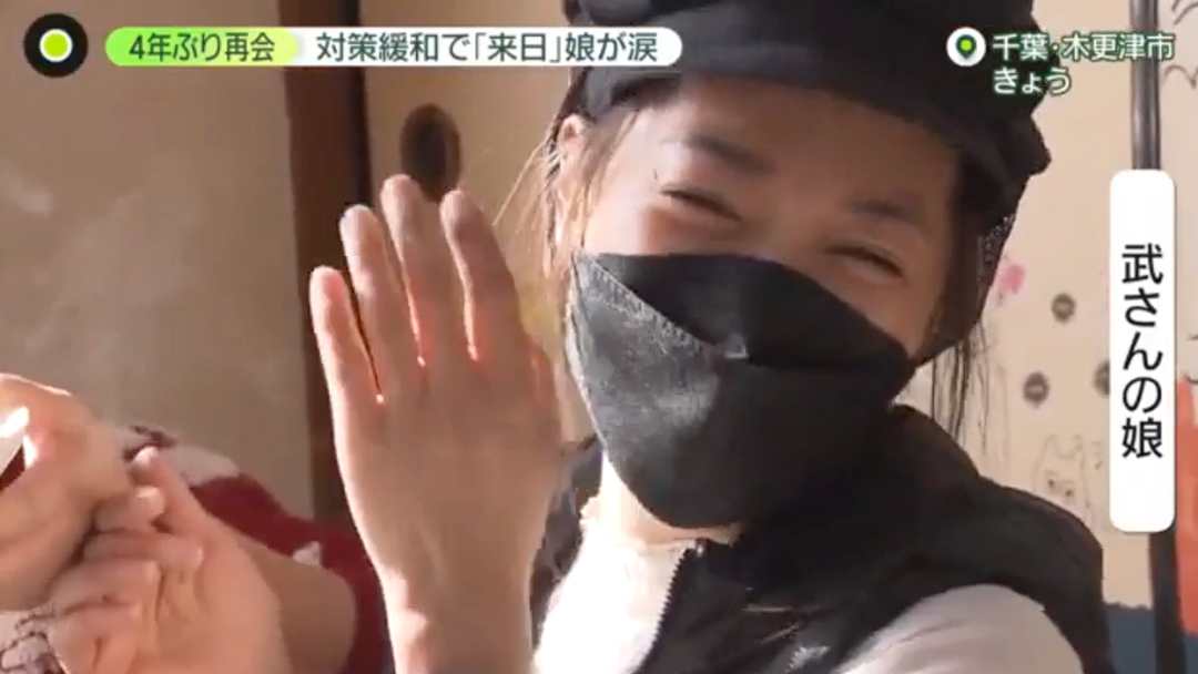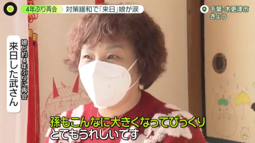 她从北京飞往东京,抵达成田机场的时候,她接受了疫情的相关检查,结果为阴性。然后她来到千叶县的木更津市,与4年未见的女儿和孙女团聚。