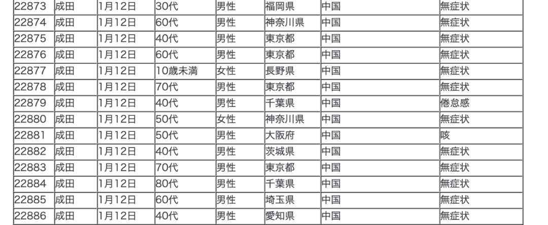 根据厚生省的数据显示,从1月6日到12日的一周内,在对7261名来自中国的入境者进行的检查中,发现阳性为249人,阳性占比不到4%,而且很多都为无症状。