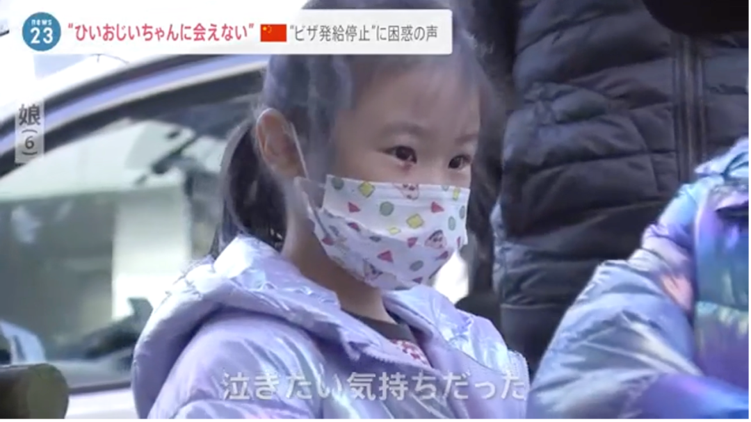 这位六岁的日本小女孩,原本准备和家人一起去中国探望生病的爷爷,并且和爷爷一起过春节团聚。可惜签证刚刚被拒了。