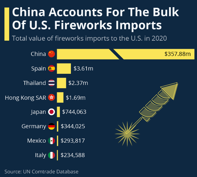 △2020全年,美国进口了价值约3.58亿美元的中国烟花