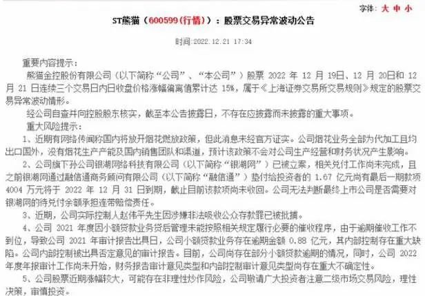 面对这波猛涨的行情,ST熊猫甚至专门披露了股价交易异常波动的公告,大家嘴上说着不放,手里的钱却那么老实,果然是「Money Never Lies」。