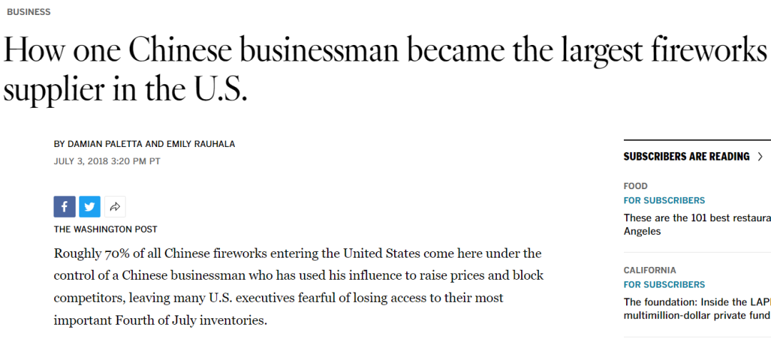 △《洛杉矶时报》:中国商人怎么就成了美国最大的烟火供应商?