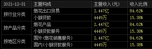 难怪2021年内,该公司宁愿继续加码互联网金融做小额贷,都不想在国内卖烟花了,确实投入产出比不高。