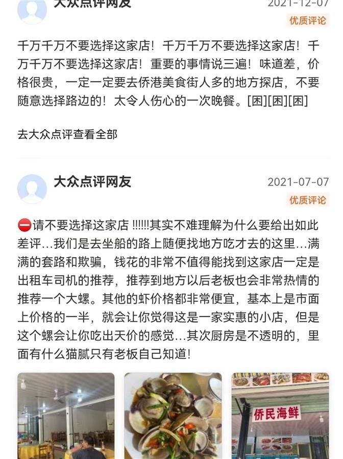 极目新闻记者多方了解发现,在多个APP平台,侨民海港海鲜加工城自两年前开始,就被网友诟病价格高、菜难吃。28日上午,多名北海当地餐饮同行发声,称该店已经影响了当地声誉,诚信经营的商户不会出现这种情况。
