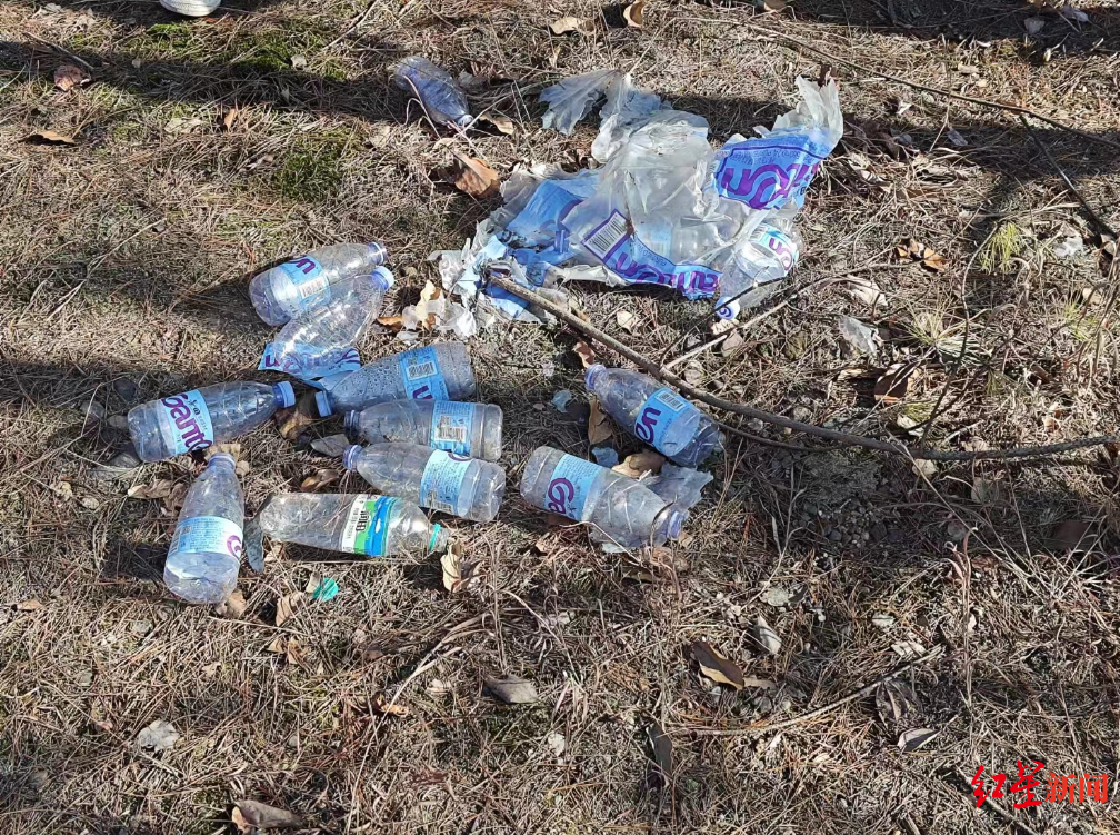 1月30日,红星新闻记者在该片区域内进行了实地探访,发现金鸡山距致远中学最近处仅一墙之隔,在这片山林密布的区域内,记者看到了许多搜救队员曾留下的痕迹。山间沿途的树木有很多被新近砍伐过的痕迹,路面上也随处可见散落着的被砍倒的树枝以及喝剩下的矿泉水瓶。